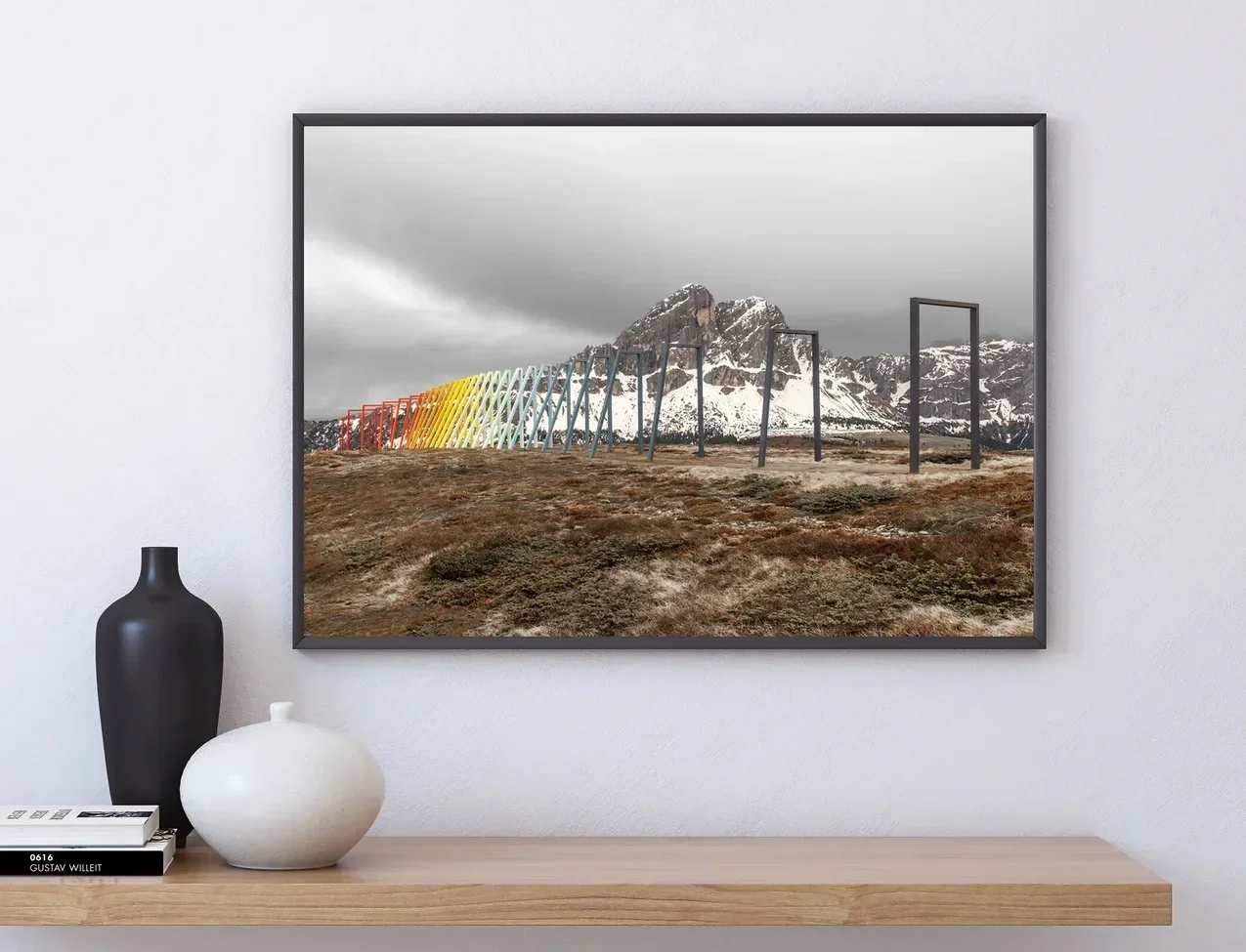 1 A3 photograph printed on matt photo paper of an artwork from the 2021 biennale of your choice. Aluminium and passepartout frame.