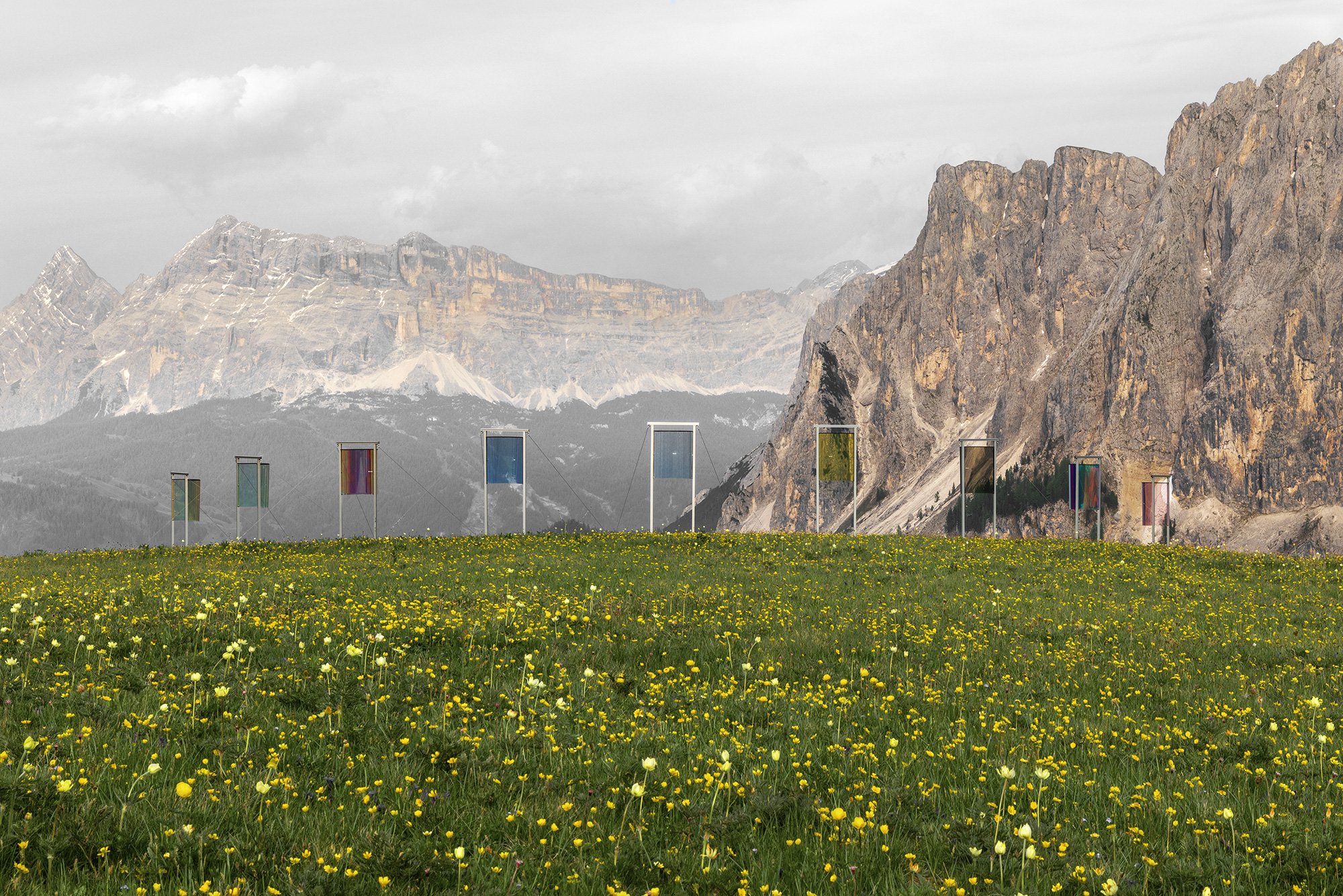 Nine stations with colored filters alter the perception of the panorama overlooking the marvelous Crep dlas Dodes, Piz Somplunt, and Piz Duleda—the peaks that separate the Longiarù valley from the Antersasc valley. We typically find these chromatic effects in smartphones (on Instagram, for example, they bear the names of iconic cities like New York, Tokyo, Paris, Rio de Janeiro) or in photo post-production programs. “.arexport” is, in fact, the extension for images modified with digital effects. Bringing these filters into the real world as an art installation invites the public to reflect on the immaterial tools that modify real existences, the perception of them, and how millions of people publicly share every detail. Placed in a location that needs no alteration, the artwork prompts a further question: what needs does the desire to sugarcoat the images of our lives address?