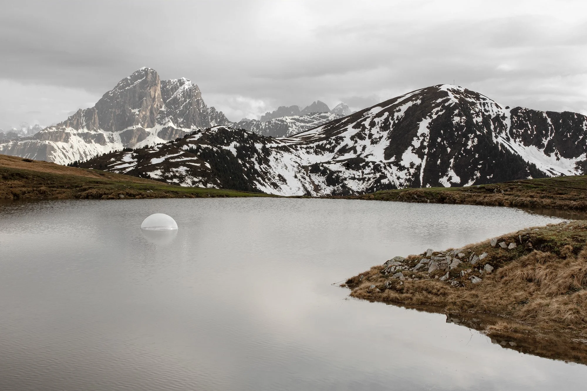 “Metafisica dell’occasione” (The metaphysics of chance) is an artwork by Sara Ambrosini and Giorgia Marchetti. It precisely mirrors the frailty of the heterogenous context it is placed in and, within it, the precariousness of a meeting. A bubble which is a guest and an observer, a surface of pure coincidence, an opportunity. An elemental recognition and, at the same time, the impossibility, absurdity of a correspondence between language and a natural factor, a curvature of space which is unthinkable. A bubble, a precarious and provisional moment. A circulation, resonance, and repercussion surface. In other words: the recovery of a sense. A sense of the outside world which is multiplied, indefinitely, and which multiples us infinitely.