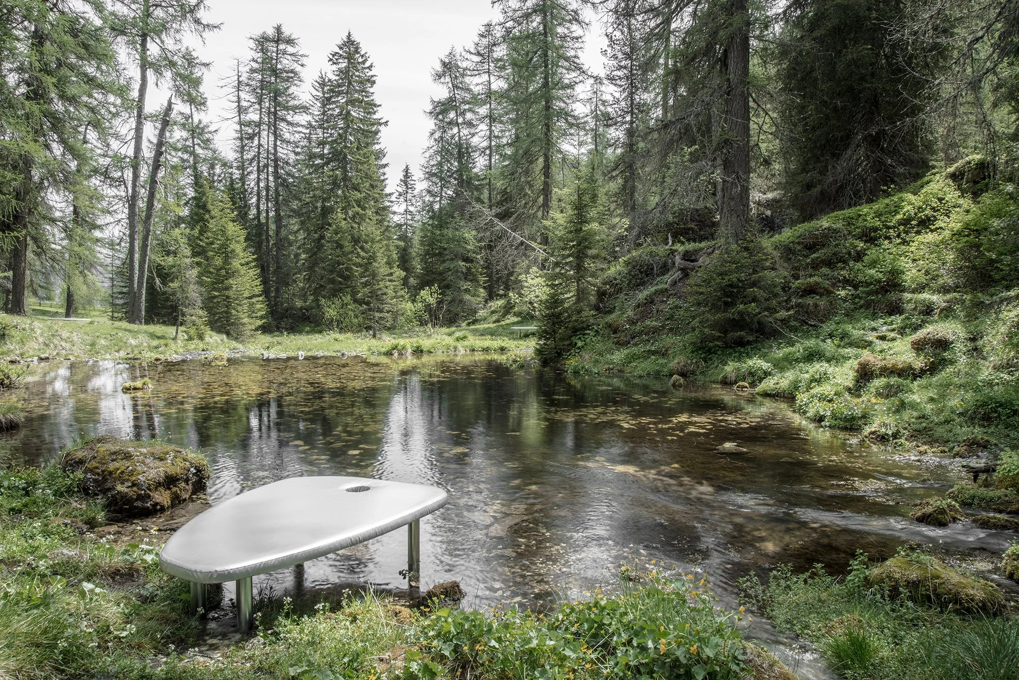 The work of David Duzzi consists in the installation of some beds in the woods, with a hole at head height from which a person can observe the soil of the forest beneath him. His work comes from the idea of making a comparison between the type of nature we are accustomed to, on a "macroscopic" scale (clouds, mountains, trees), and a kind of "microscopic" nature, made of insects, moss, lichens, mushrooms and other parts that otherwise would not be at the centre of our attention. The world of the understory will show its amazing vitality only to those who will decide to take the time to lay down and explore a new universe, almost parallel.